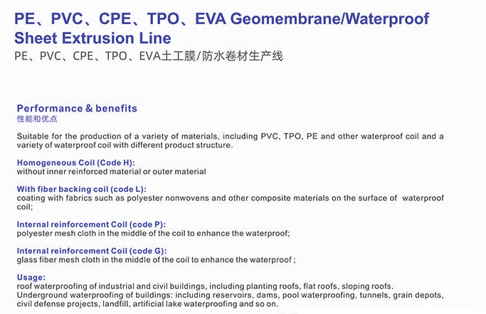PE、PVC、CPE、TPO、EVA Geomembrane/Waterproof Sheet Extrusion Line